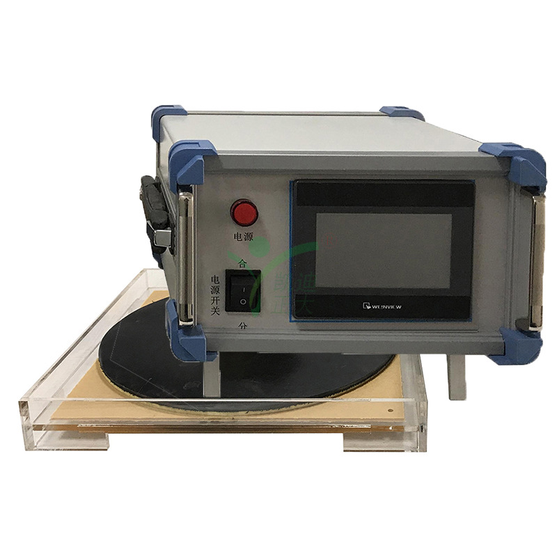 本試驗(yàn)裝置由三部份組成:工頻電壓發(fā)生器、電壓測(cè)量表、測(cè)試電極組合。測(cè)試電極組合包括:1.)黃銅加壓電極;2.)橡膠板;3. )黃銅接收電極;4.)絕緣板;5.)測(cè)試固定盤;