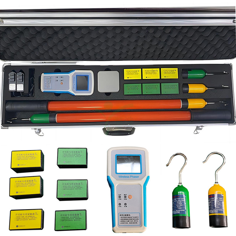 儀器引用《DL/T971-2005帶電作業用交流1KV-35KV便攜式核相儀》,采用無線傳輸技術,操作安全可靠,使用方便,克服了有線核相器的諸多缺點。