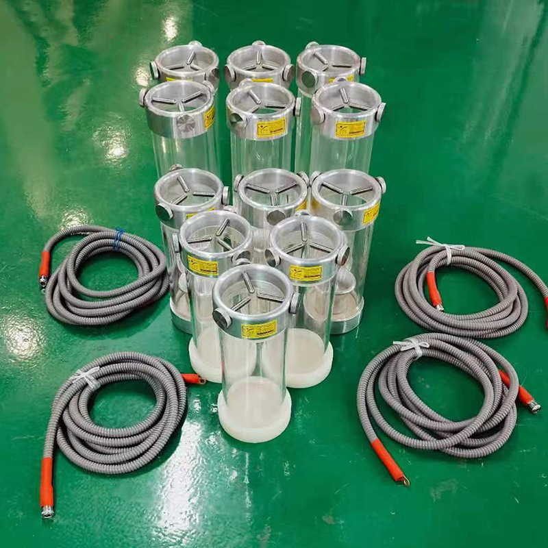 目前電纜廠均擁有多條 XLPE 生產(chǎn)線,但只有一套局部放電檢測設(shè)備。若采用我公司的專用終端,和剝削工具。將使局放實(shí)驗(yàn)簡單宣行,可將試驗(yàn)準(zhǔn)備工序時(shí)間減少一半,事半功倍。終端雖小,效益大!它是由有機(jī)玻璃管、電纜端頭固定法蘭、高壓屏蔽罩組成,整體為懸掛式。性能優(yōu),使用方便、安全可靠。