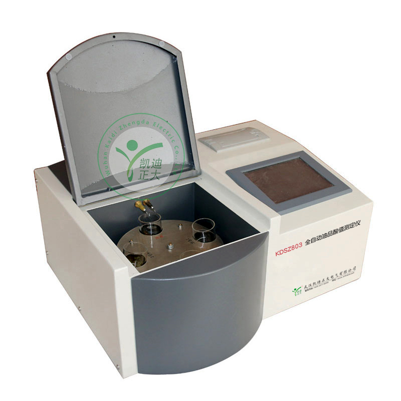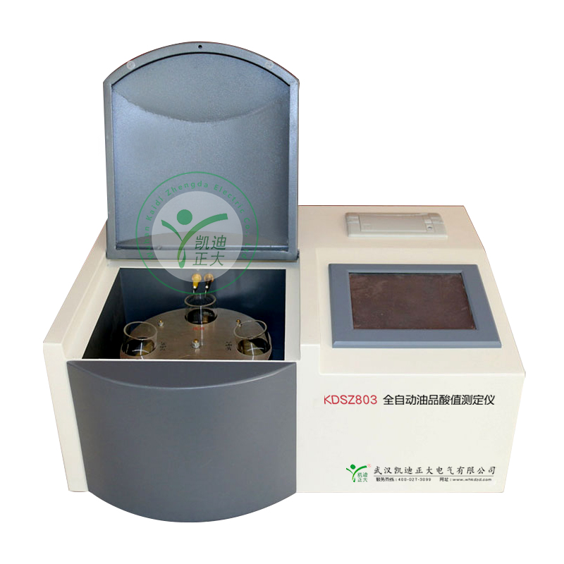KDSZ-803D全自動油品酸值測定儀采用中和法原理,于常溫狀態(tài)下,微機控制自動完成加液、攪拌、滴定及終點判斷。采用觸摸式液晶屏選擇所有工作參數(shù),人機對話界面簡潔友好,操作方便,油樣平均分析周期為2分鐘左右。可分別顯示多至35組的測定結(jié)果,并可打印輸出多項與測定相關(guān)的參數(shù)。