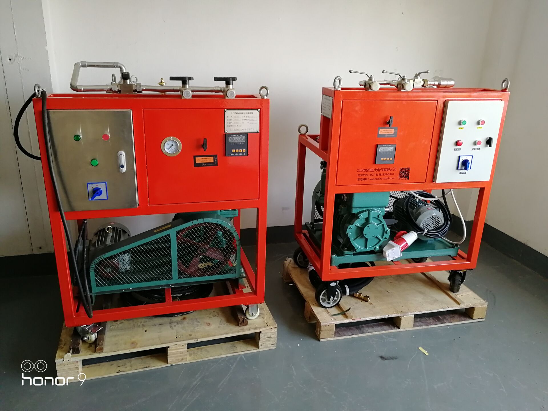 SF6氣體抽真空充氣裝置:KDQC-33抽氣速率≥45L/s;風(fēng)冷手推移動(dòng)式,前級(jí)真空泵(抽氣速率(54m3/h;)極限真空10(裝置極限)(Pa)功率2.2kW;)羅茨真空泵(抽氣速率70L/s;極限真空≤10Pa;功率0.75kW);電源三相五線制 3Φ 380V;總功率≤3kW;噪聲≤60dB(A);重量200kg;尺寸(長(zhǎng)*寬*高)82 cm *55 cm *115cm