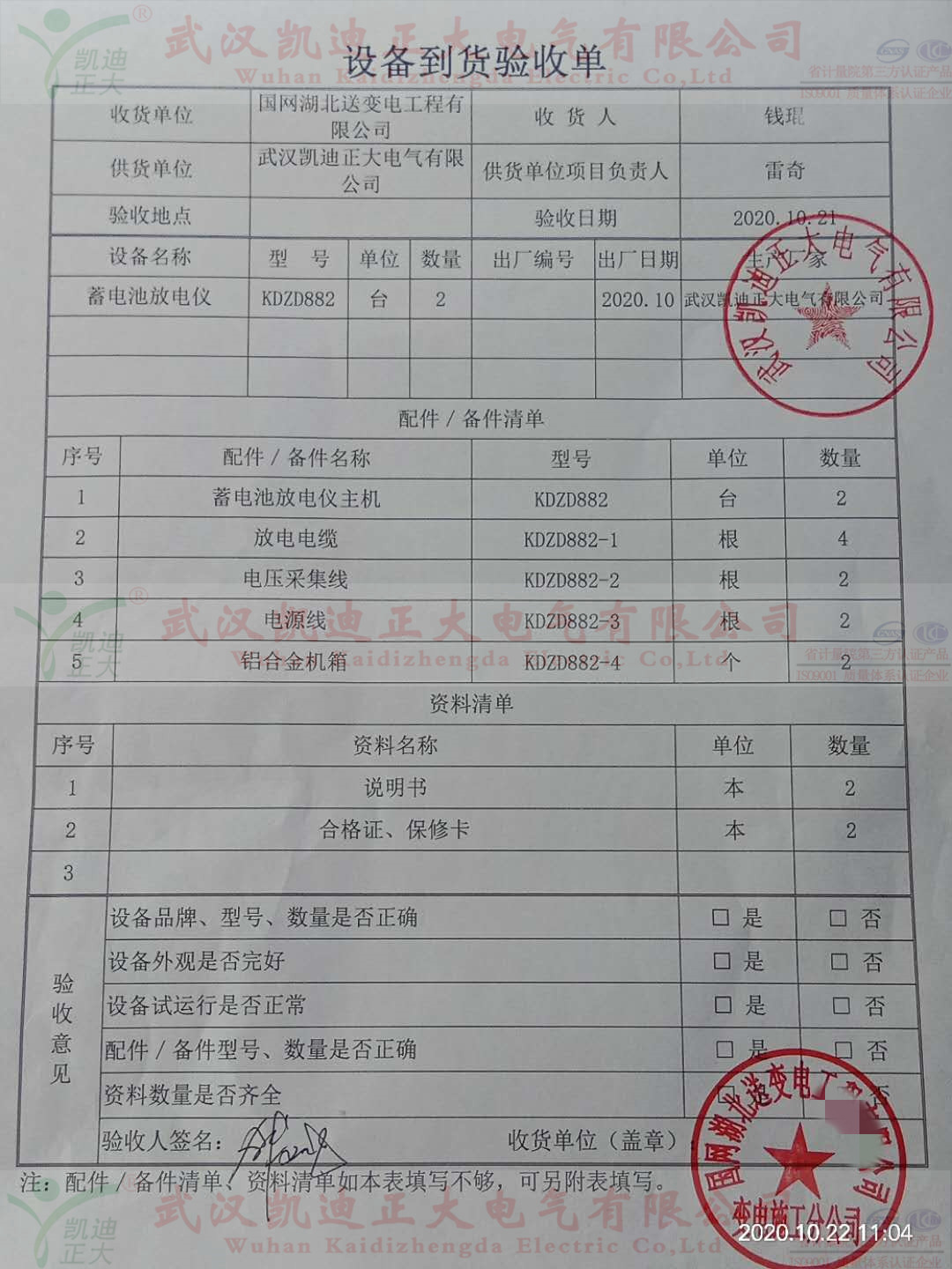 賀KDZD882放電儀獲國(guó)網(wǎng)湖北送變電公司驗(yàn)收合格