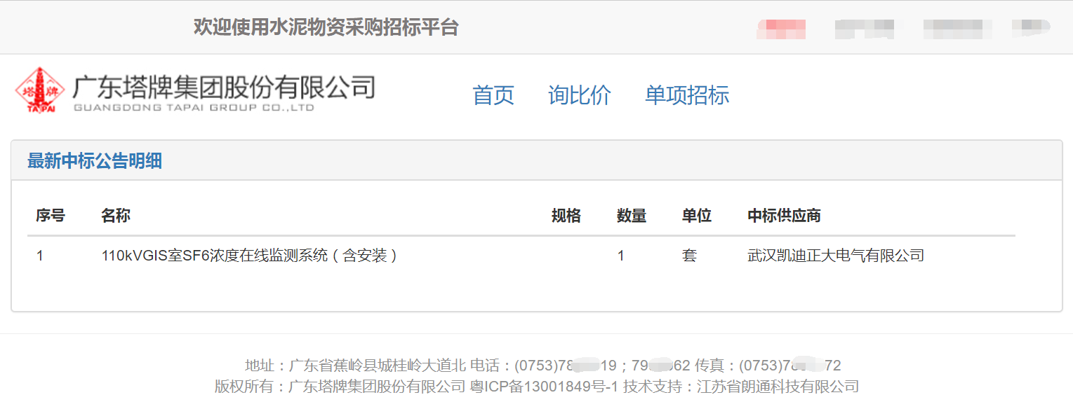 中標(biāo)廣東塔牌集團(tuán)SF6濃度在線監(jiān)測(cè)系統(tǒng)
