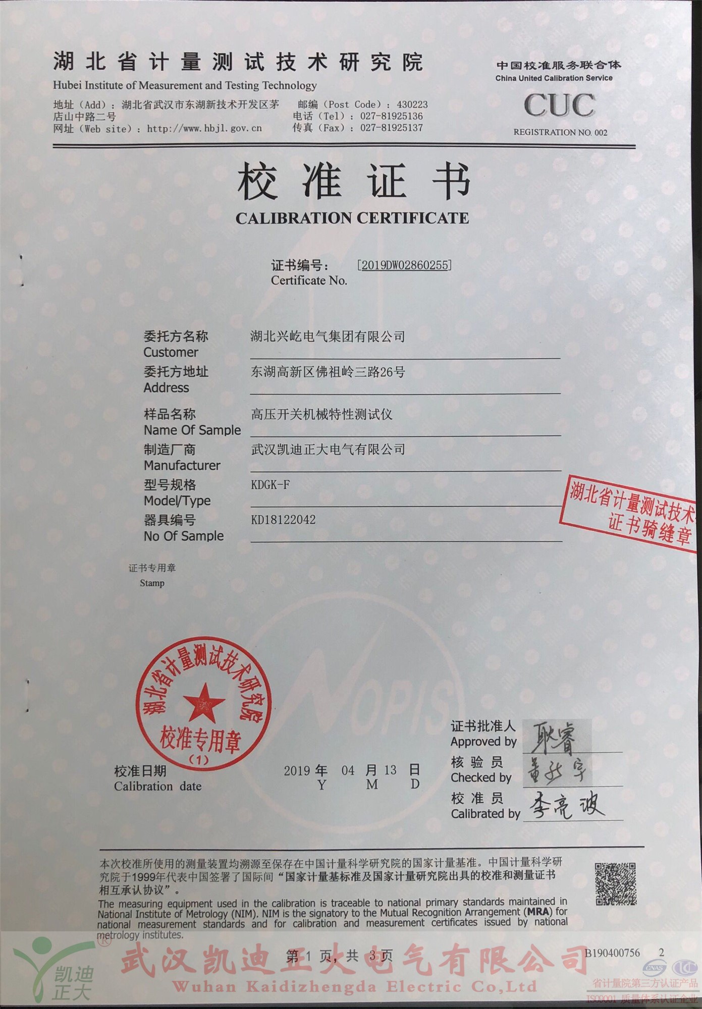 購買后便送往中國校準(zhǔn)服務(wù)聯(lián)合體-湖北省計(jì)量測試技術(shù)研究院檢定,由省計(jì)量院出具的《校準(zhǔn)證書》,證書編號:2019DW2860255,校準(zhǔn)員:李亮波,檢驗(yàn)員:董新宇,證書批準(zhǔn)人:耿睿。