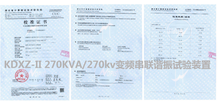凱迪正大KDXZ-II 270KVA變頻串聯諧振試驗裝置取得專業校準證書