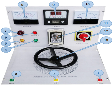 1、停止按鈕 2、計時開關 3、啟動按鈕 4、工作指示燈 5、零位指示燈