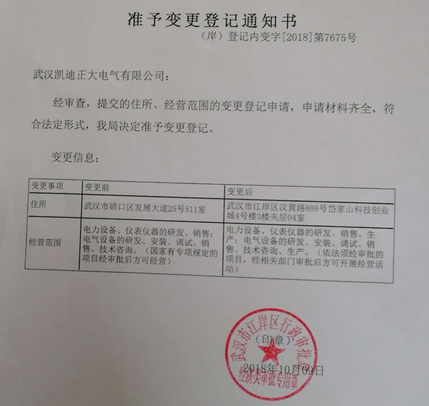 變更后:武漢市江岸區(qū)漢黃路888號(hào)岱家山科技創(chuàng)業(yè)城4號(hào)樓3樓夾層04室 經(jīng)營(yíng)范圍:電力設(shè)備、儀表儀器的研發(fā)、銷(xiāo)售、生產(chǎn);電氣設(shè)備的研發(fā)、安裝、調(diào)試、銷(xiāo)售、技術(shù)咨詢(xún)、生產(chǎn)。(依法須經(jīng)審批的項(xiàng)目,經(jīng)相關(guān)部門(mén)審批后方可開(kāi)展經(jīng)營(yíng)活動(dòng))