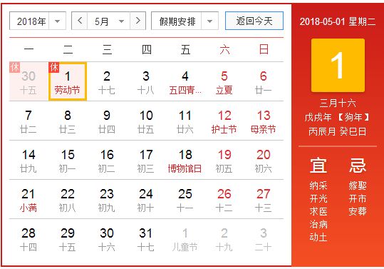 2018年五一放假安排時(shí)間表最新國(guó)務(wù)院官方發(fā)布: 4月29日(星期天)至5月1日(勞動(dòng)節(jié),星期二)放假調(diào)休,共3天。 友情提示:4月28日(星期六)上班。