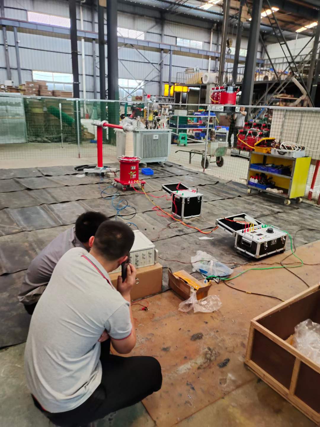抵達現場后王工先與客戶細心講解了儀器的特點和使用方法,之后進行測試前的設備線路連接和被試絕緣油樣品取樣工作。 王工在確認各項準備工作無誤后開始與客戶進行絕緣油樣品測試,測試完成后進行油介質損耗測試。 在王工耐心的指導下,客戶完成了本次被試絕緣油樣品的油介電強度和油介質損耗試驗。然后進行變壓器負載試驗及無局放耐壓試驗指導,一直忙到晚上。最終,成功完成客戶的培訓指導工作,客戶對此次技術指導培訓工作非常滿意。