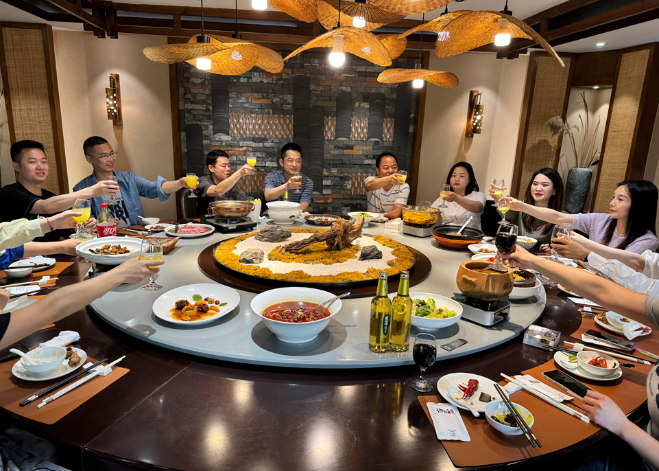 聚餐現場氣氛熱烈而歡樂,此外,餐廳還組織了生日祝福環節,大家紛紛舉起酒杯,為壽星送上誠摯的祝福,場面溫馨感人。