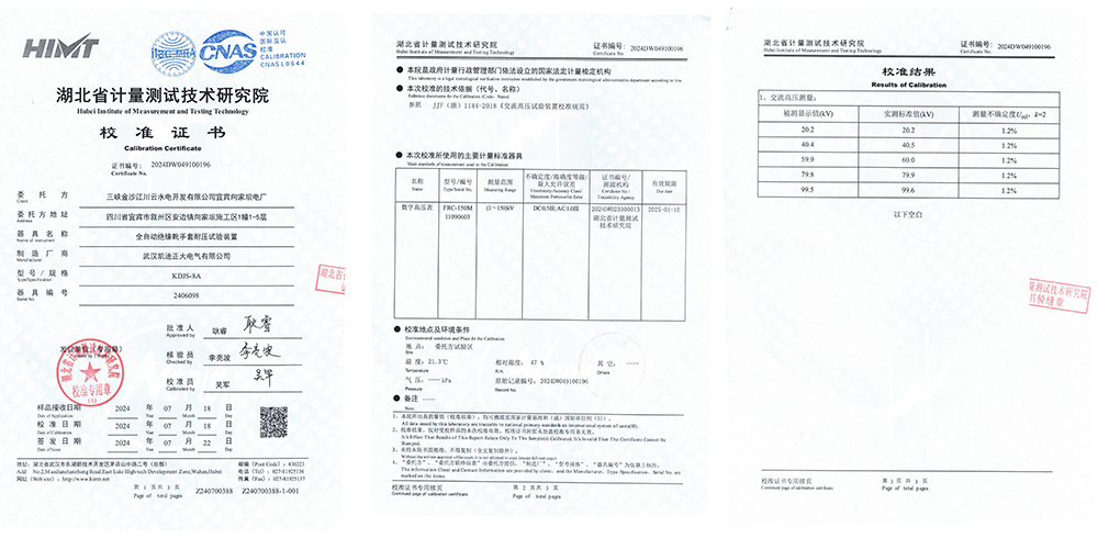 近日三峽金沙江川云水電開發(fā)有限公司宜賓向家壩電廠訂購的我司KDJS-8A全自動絕緣靴手套耐壓試驗裝置,設備順利通過了湖北省計量測試技術研究院的嚴格檢測。