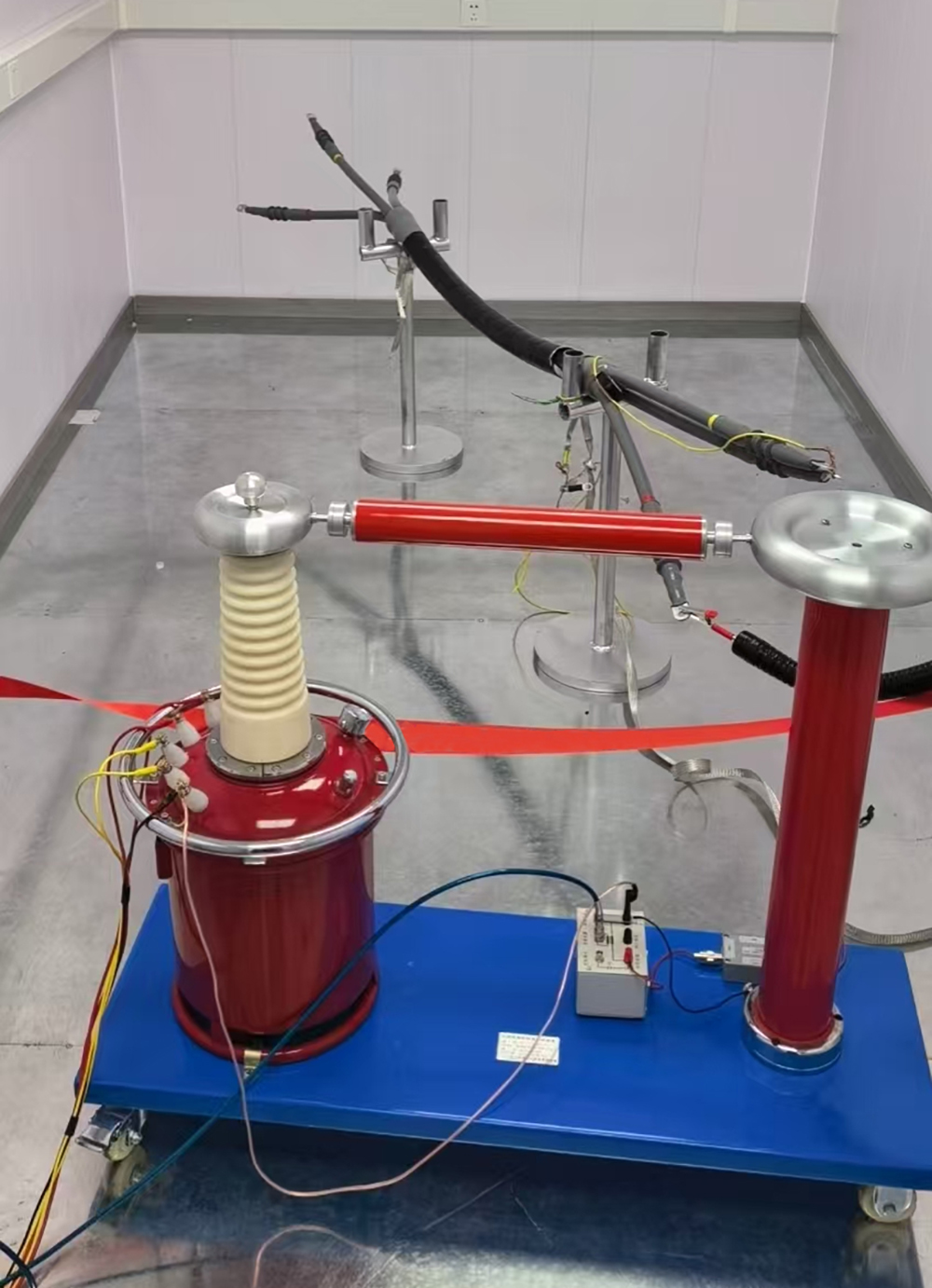 屏蔽室內尺寸為長5米×寬4米×高2.45米,配置了電動平移屏蔽門和手動單開屏蔽門,方便人員和設備進出。室內還安裝了通風截止波導窗和電源濾波器等設備,有效隔離了外部電磁干擾和電源干擾。同時,屏蔽室內還配置了無電磁干擾的LED長管燈和接地系統等設施,為局部放電試驗提供了一個安全、舒適、可靠的測試環境。
