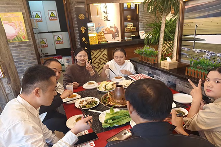 鮮嫩的羊肉、豐富的配菜陸續上桌,大家舉箸暢談,歡聲笑語與鍋底的沸騰聲交織。平日里在不同崗位忙碌的同事們,此刻圍坐一桌,卸下了工作的緊張,交流著生活中的趣事,暢談著對未來的展望。公司領導們也融入其中,親切地與每一桌的員工交流,向大家致以節日的問候,并感謝大家近期的辛勤努力??曜悠鹇溟g,不僅是美味的傳遞,更是情感的升溫與團隊的融合。這場羊肉火鍋宴,仿佛一個溫馨的大家庭聚會,暖了胃,更暖了心,將團隊凝聚力在這升騰的熱氣中推向新的高度。