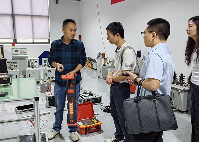 2025.9.30,深圳市特力康科技有限公司代表團一行蒞臨凱迪正大進行參觀與技術交流。深圳市特力康科技有限公司是一家專注于電力行業智能監測設備研發、生產與銷售的技術企業。此次訪問旨在增進雙方了解,探討在電纜探測技術領域的合作機會。凱迪正大對代表團的到訪表示熱烈歡迎,并安排了包含產品展示、實操觀摩與技術交流的行程安排。在整個參觀過程中,雙方重點圍繞凱迪正大的核心產品——KD-2190智能電纜綜合探測儀展開了深入交流。