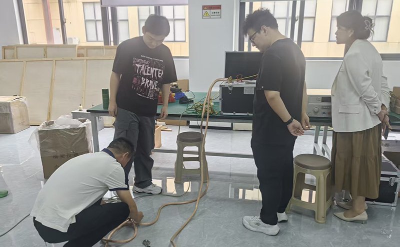 第二站:生產車間——見證制造匠心隨后,技術人員陪同嘉賓走進生產車間。我們向來賓簡要說明了高壓諧振電抗器、超高壓耐壓測試儀等產品的組裝與調試。希望通過呈現有序的生產現場和嚴謹的作業流程,讓代表團感受到凱迪對產品品質的切實追求與保障能力。
